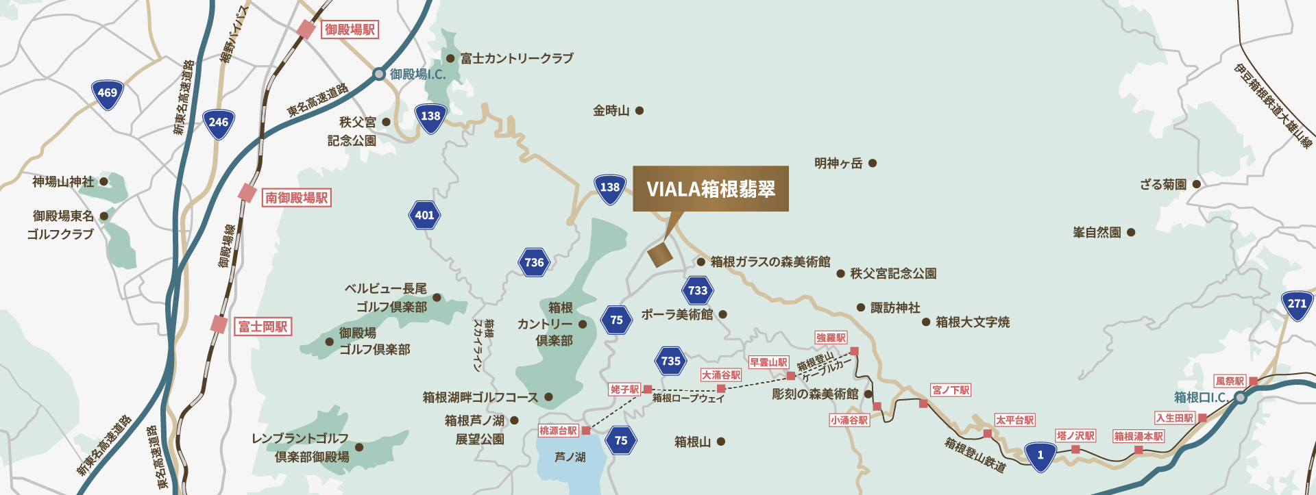 東京I.Cより約81分。魅力のスポットがあふれている箱根仙石原の中心地。