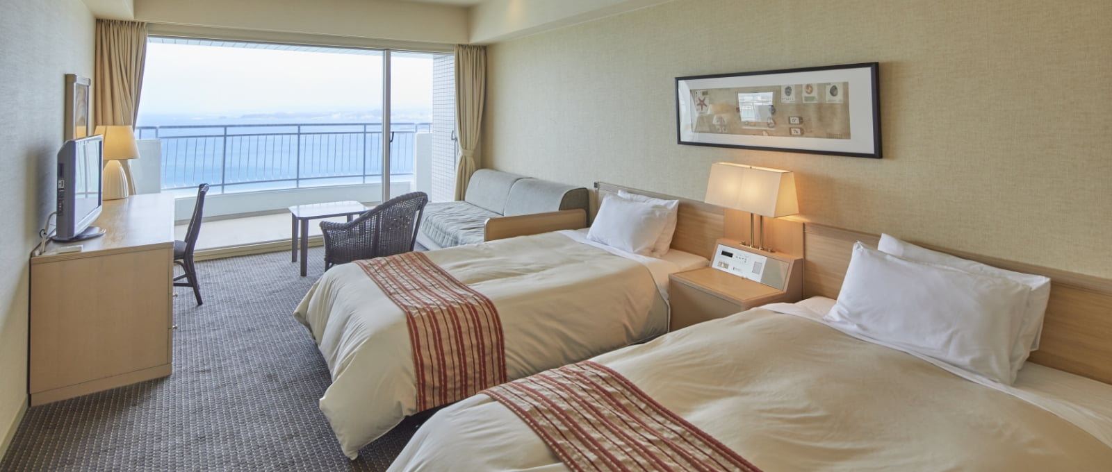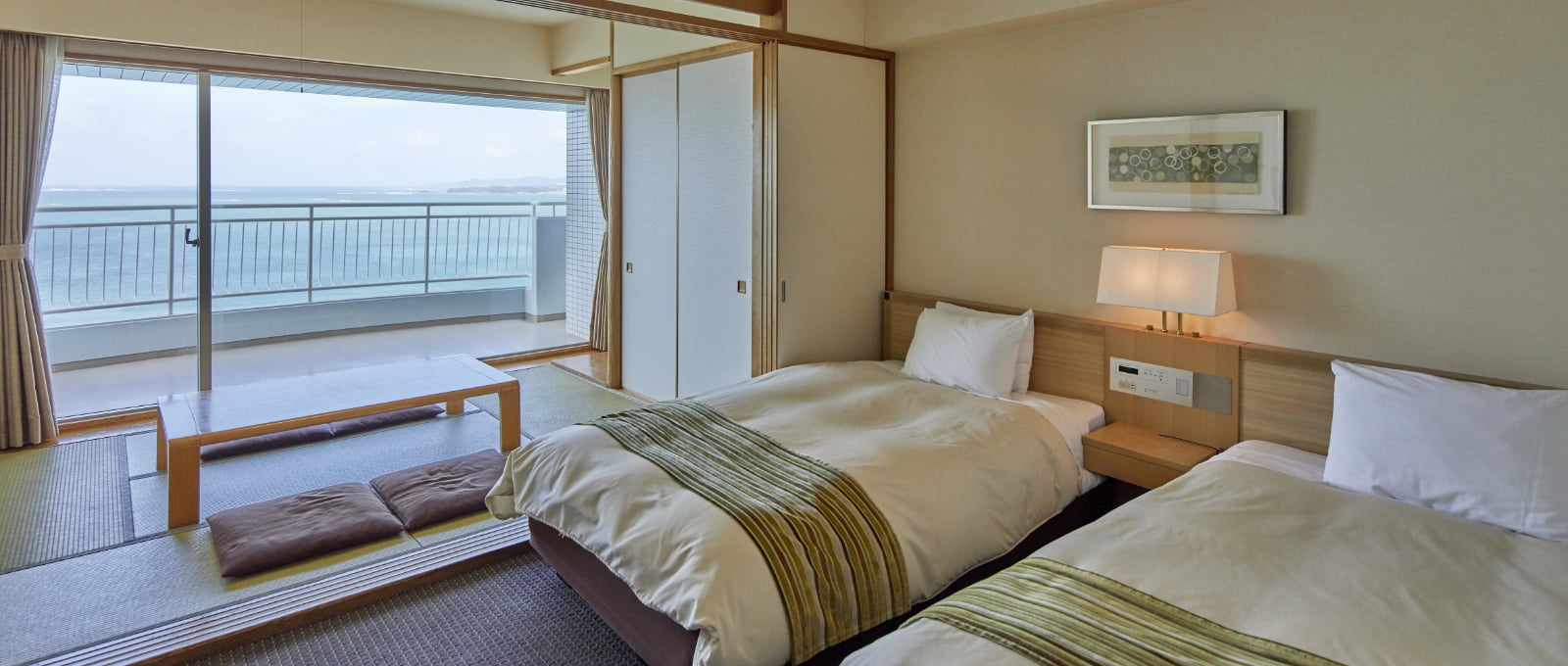 やわらかな雰囲気で統一された洋室や和洋室は、パステルトーンの色調と調度品により、心地よい空間をお届けいたします。