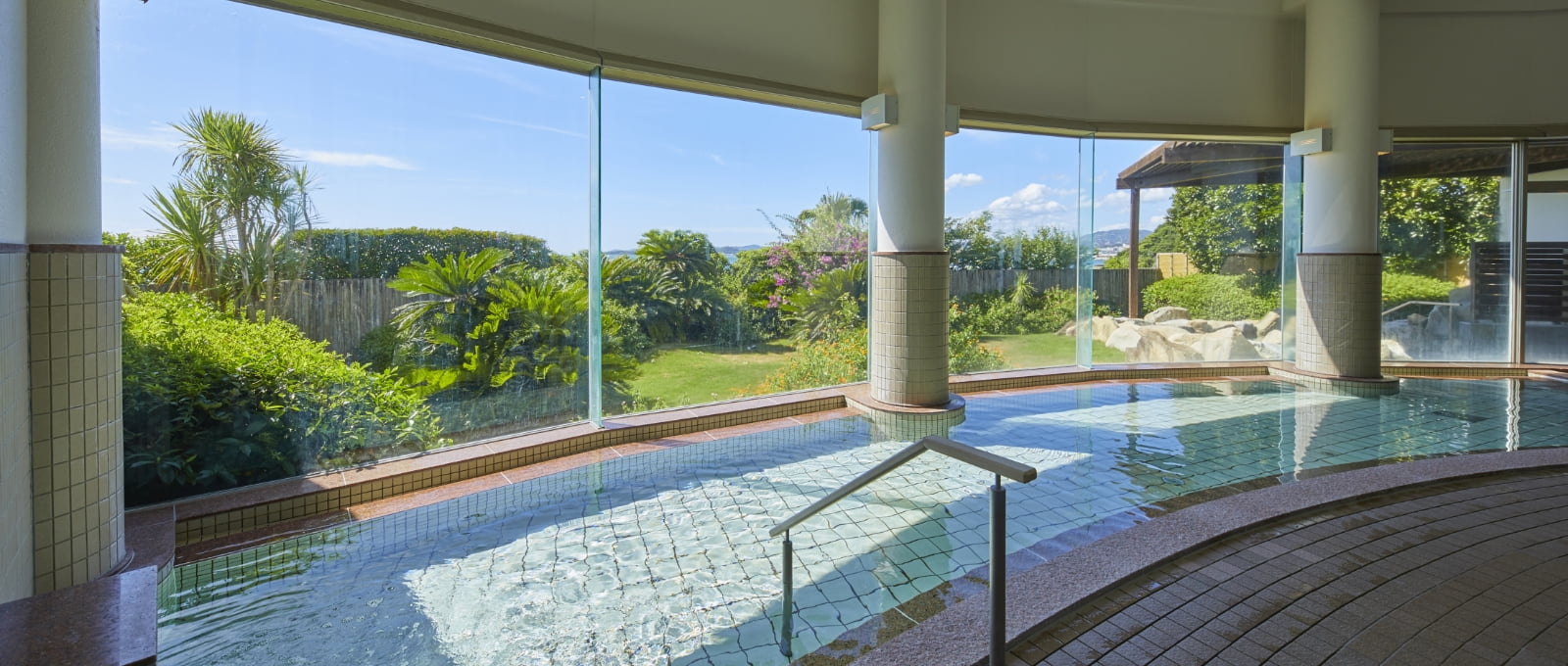 太平洋を一望できる広々とした大浴場では、良質な天然温泉にゆったりとつかって、一日の疲れをいやすことができます。