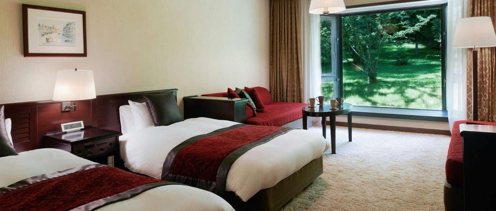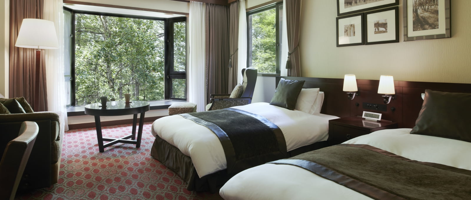 自然を取り込むように設計されたゲストルームは、歴史あるホテル独特の雰囲気を残しながら、清潔で温かみのある現代風にアレンジ。クラシカル&モダンな空間が、新しいやすらぎを演出します。