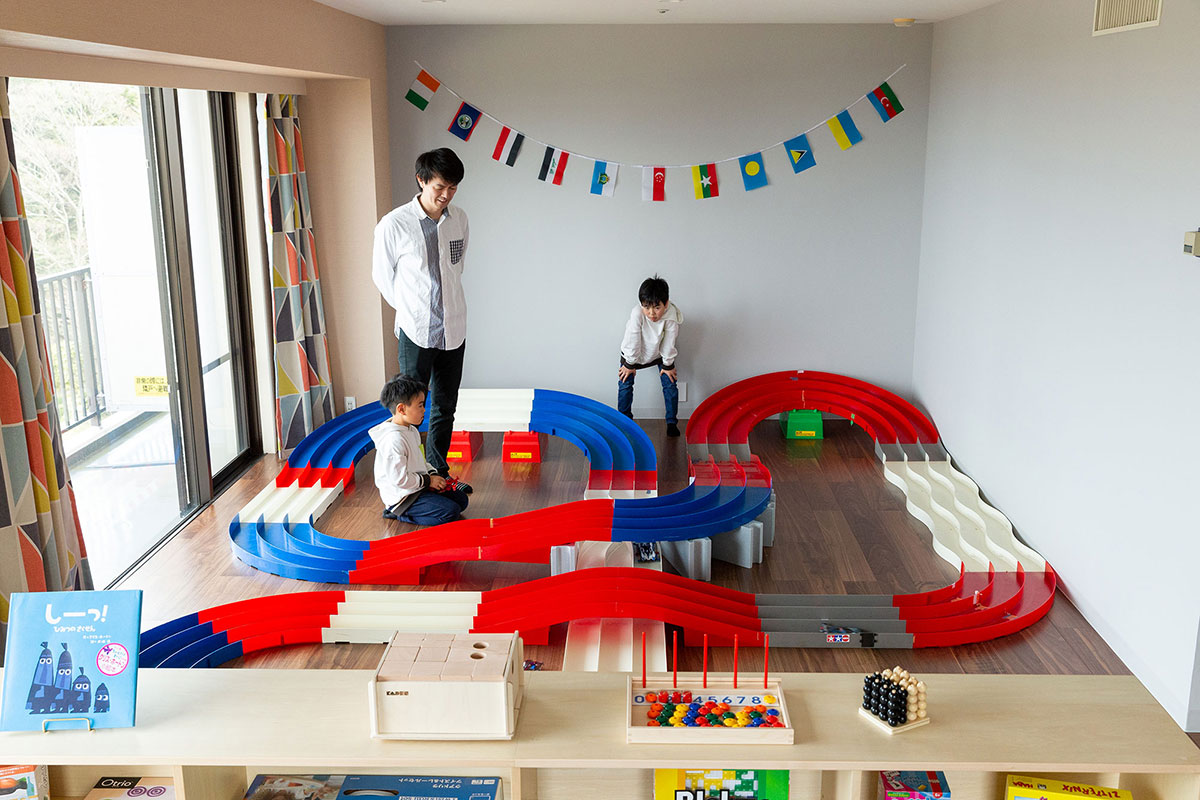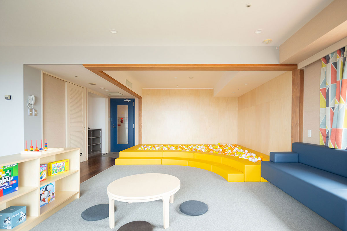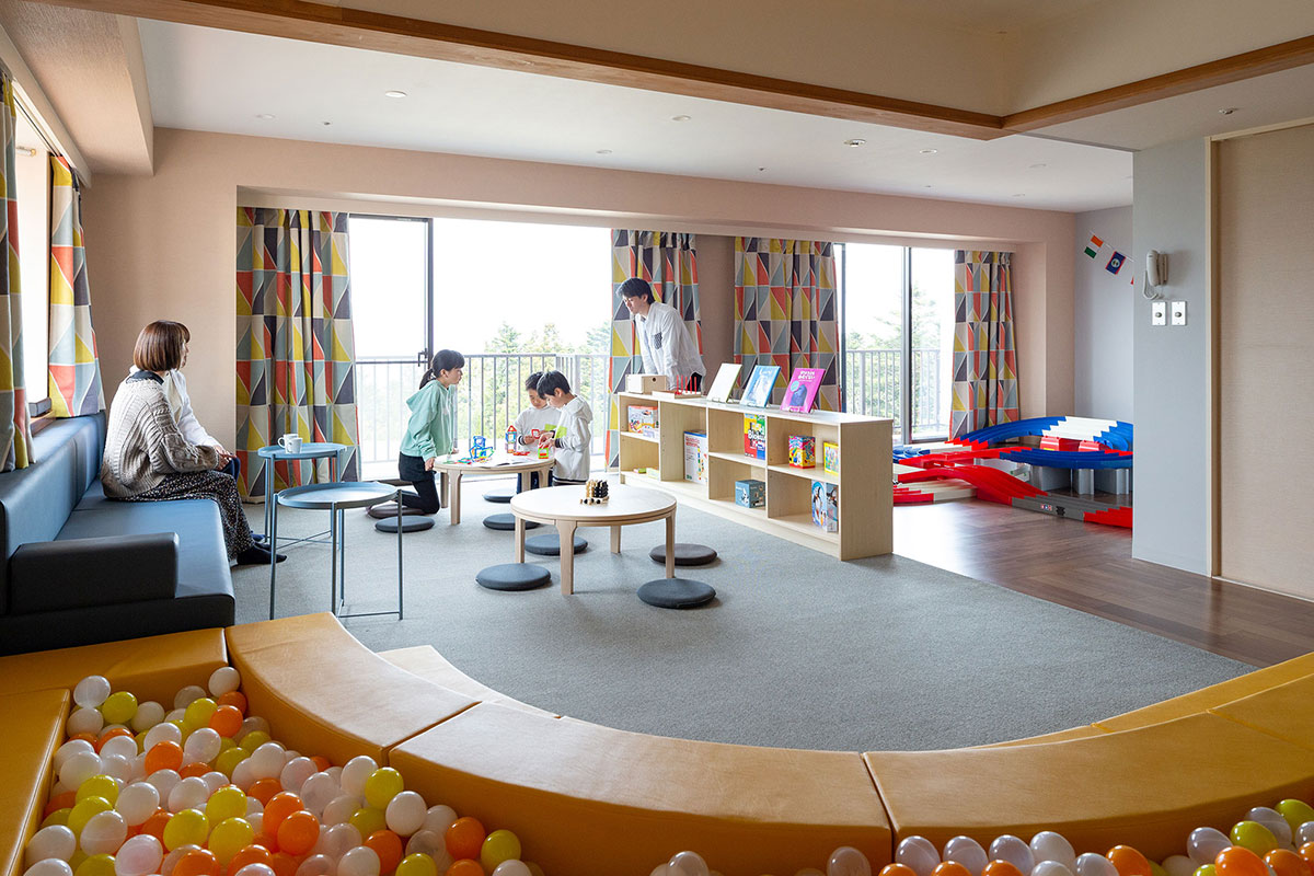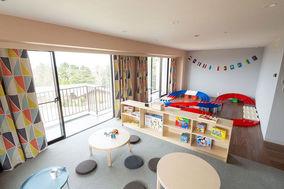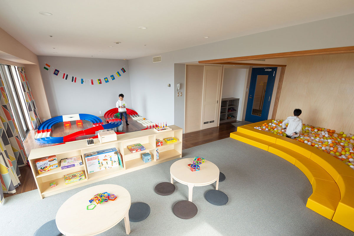 子どもの楽しいがギュッと詰まった親子のキッズルーム。 雨の日でも思いっきり楽しめるよう、幼児用のおもちゃ、カラフルなボールプール、小学生のお子様向けのミニ四駆サーキットコースなど夢中になれるさまざまなコンテンツをご用意。 窓際のソファに座り、ゆっくり寛ぎながらお子様達の安全を見守ることができます。 また大人も熱中して楽しめるボードゲームも多数ございます。 お食事やご入浴の合間に、家族や友人との団欒のひとときをお楽しみください。
