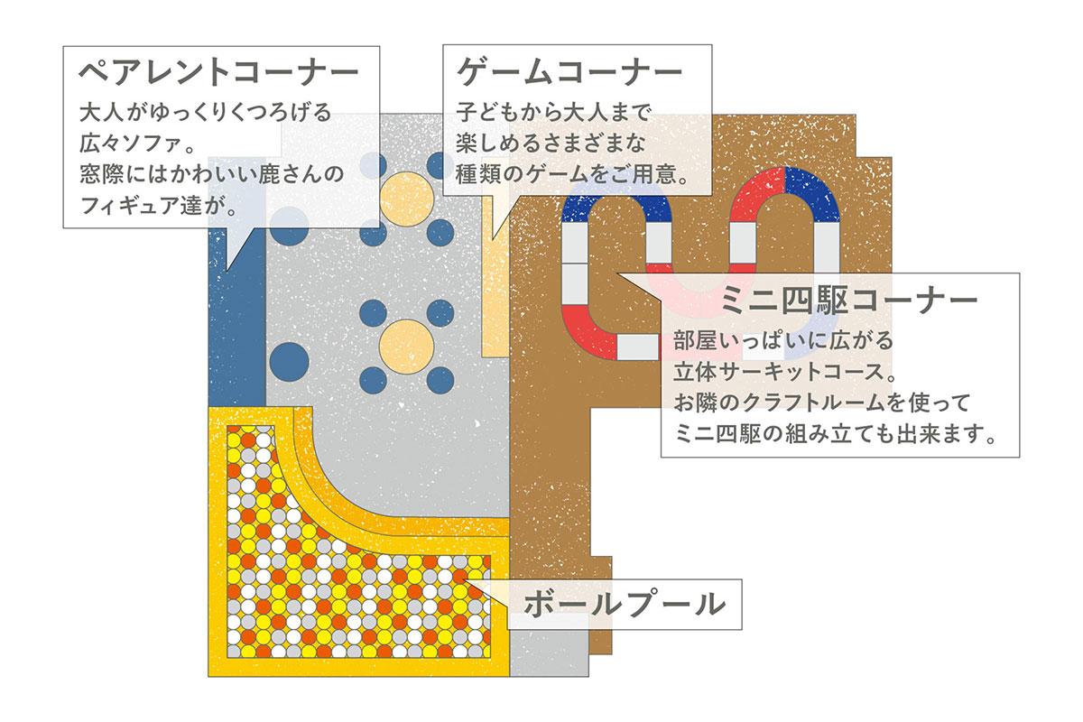 | ※ | ミニ四駆サーキットやゲームなどの備品は、時期によって変更となる場合がございます。 |