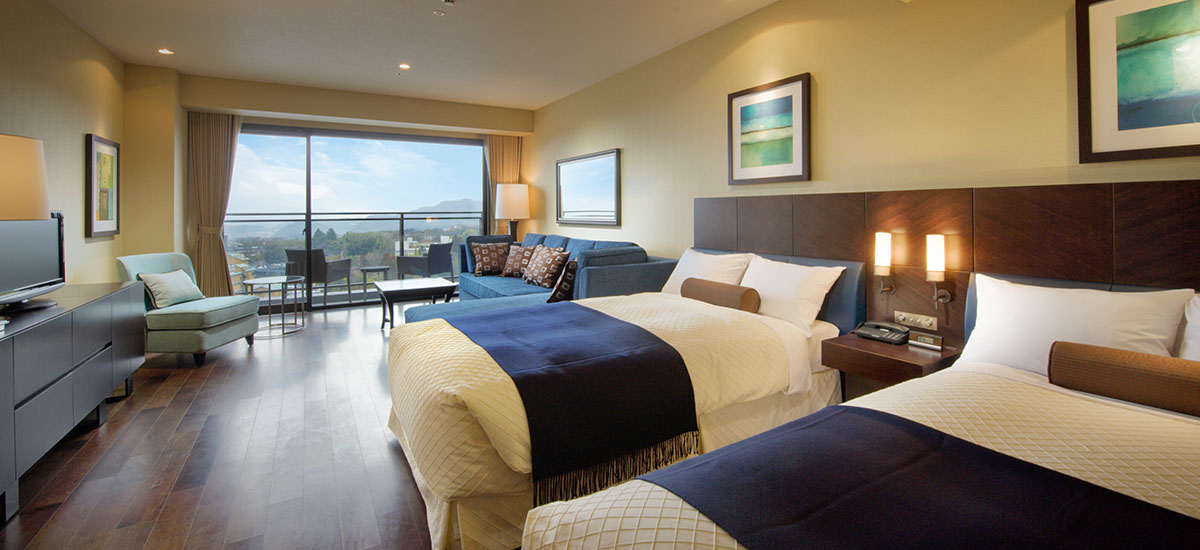 その温泉街や遠く有馬富士を望む高台にたたずむ、「東急ハーヴェストクラブ有馬六彩」。