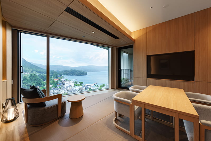 芦ノ湖を望む落ち着きと温もりある空間を実現します。