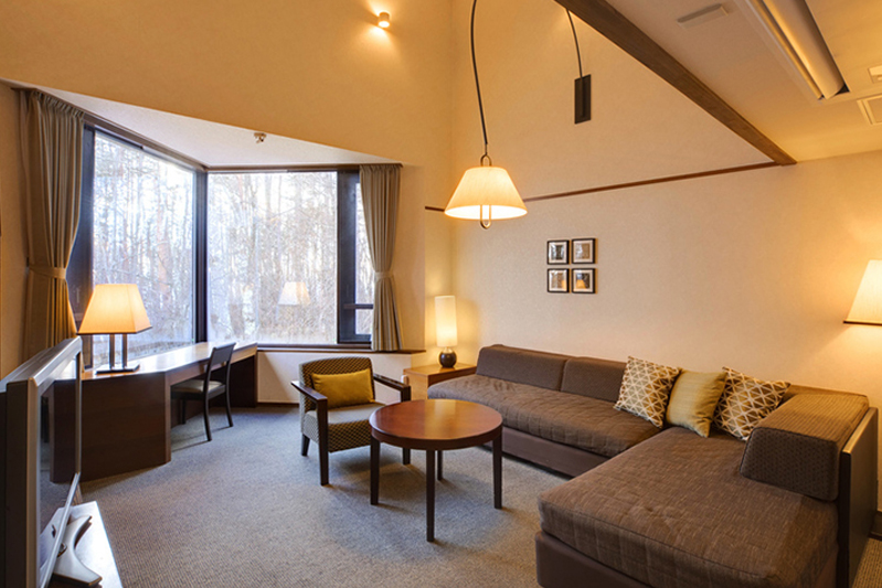 オフホワイトの外壁に、蓼科のアースカラーを彩る屋根。緑豊かな大自然に溶け込むように佇む蓼科。