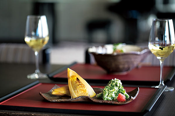 旬を迎える房総の筍と地元の野菜をふんだんに使ったディナーコース「菜〜Sai〜」は、和食料理長・山田誠が腕を振るう3月のおすすめコースです。コース名は野菜の“菜”になぞらえたもの。「2年ほど前に勝浦に赴任し、地元の野菜の美味しさに感動しました。和食は季節を先取りすることが多いのですが、 “走り”のみならず旬を迎えた一番美味しい野菜を、ぜひご堪能ください」(山田)。
