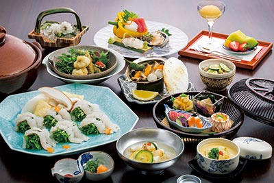 高級食材の鱧、鮑をふんだんに使ったディナーコースが登場します。