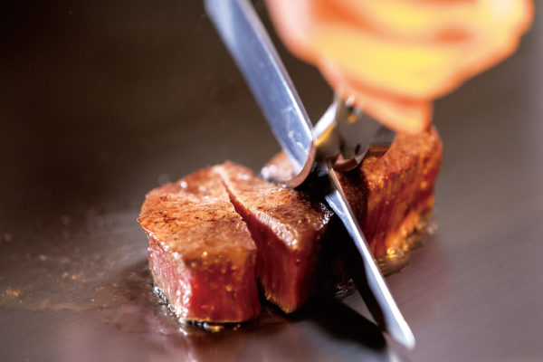 「鉄板焼は、食材を焼く音、立ち上る香り、料理ができる様子を見る、そして味わうなど五感でお愉しみいただける料理です。当店では選りすぐった素材そのものの美味しさを生かすよう、シンプルな味付けでご提供しております」