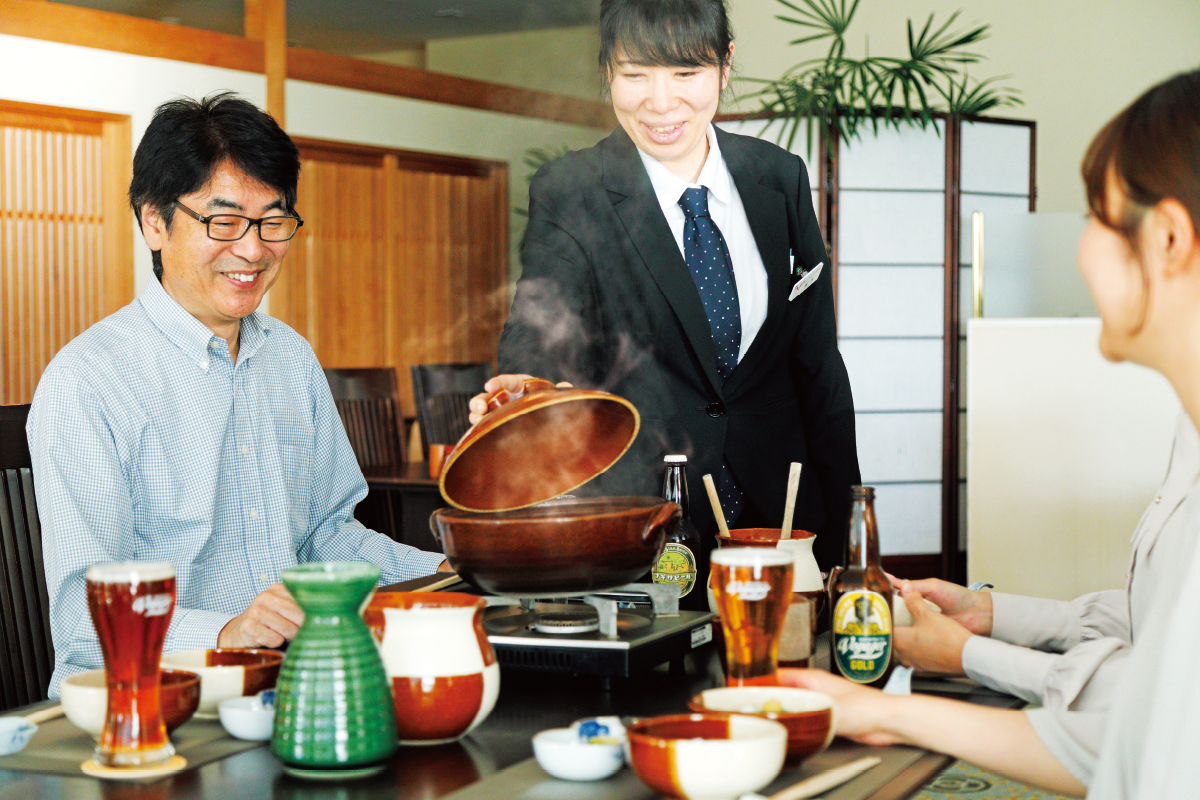 「クエは一年を通して食べられる魚ですが、特に冬は脂が乗っておりよりいっそう旨味が増します。今年の『天然クエ鍋会席』の特徴は、すべての料理にクエを使ったクエづくしということ。クエと相性がよい、大根、蕪などの根菜類、龍神椎茸、南高梅、じゃばらなどの地元食材をふんだんに取り入れ、さまざまな調理法で美味しさを引き出します。メインには脂の旨味が出汁に溶けだすクエ鍋をご用意いたしますので、ぜひご期待ください。」