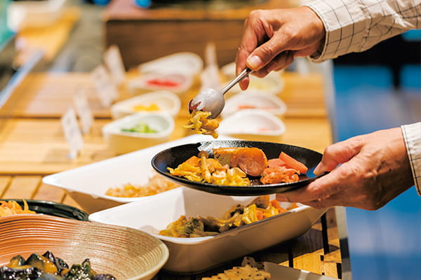 レストラン「YUI」のディナーブッフェでは、メインのほか郷土料理から家庭料理まで、飛騨高山を丸ごと味わえるさまざまな美味がブッフェ台に並びます。