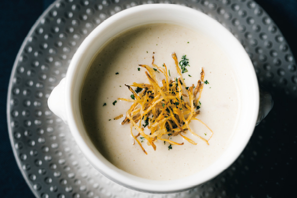 スープは「季節のポタージュ」。冬期はゴボウやカリフラワーなどを予定しております。