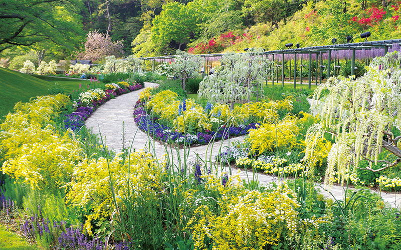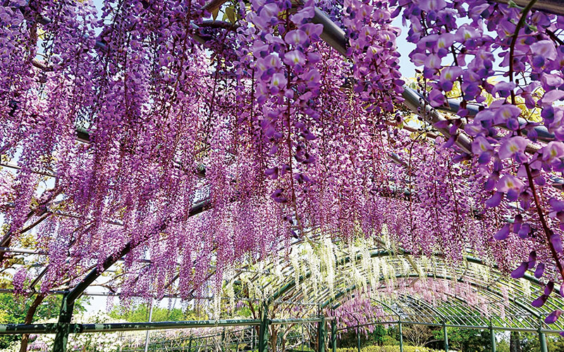 春爛漫の美しい季節、自転車旅の目的地に据えるのは、「浜名湖花フェスタ」が行われる会場。3月19日~6月12日までの期間、浜名湖周辺の花の名所をリレー形式で紹介するイベントで、「はままつフラワーパーク」と「浜名湖ガーデンパーク」の2か所がメイン会場となる。「はままつフラワーパーク」では3月はチューリップ、3月下旬〜4月初旬はソメイヨシノ、中旬は八重桜、下旬から5月にかけては藤の花が見頃を迎え、広大な敷地に季節の花々が咲き誇る様はまさに圧巻。草花でつくる高さ7mの巨大なモザイカルチャーや、季節やテーマに沿った展示が楽しめる大温室「クリスタルパレス」、浜松出身の作曲家による音楽に合わせた噴水ショーなど見どころ満載だ。