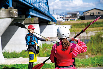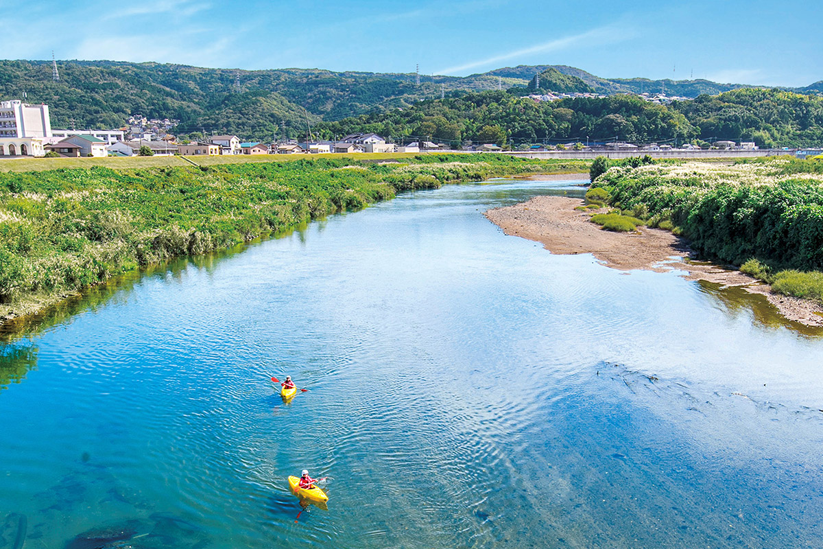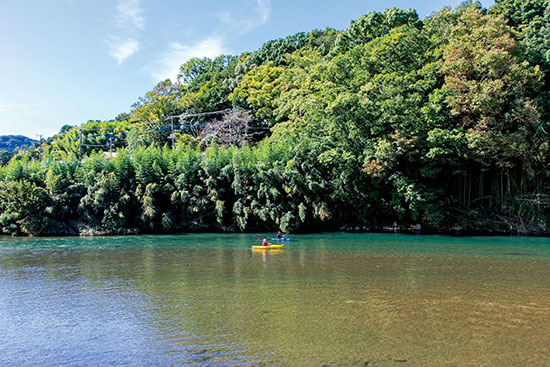 天城高原を訪れる際にぜひ体験したいのが、狩野川のリバーカヤックだ。リバーカヤックは一人乗りの小舟に乗って、両端にブレードのついたパドルを使い水面を走るアトラクション。水面すれすれをクルーズする爽快感が醍醐味で、川面から見る風景はいつもと違う感動がある。天気がよければ富士山を望むことができるかもしれない。ときには川の流れに乗ったり、逆らったりとパドルを使ってカヤックを操る楽しさは一度経験したら何度も味わいたくなる。狩野川は流れが穏やかなので、転覆する心配なく初心者でも安心して楽しめる。
