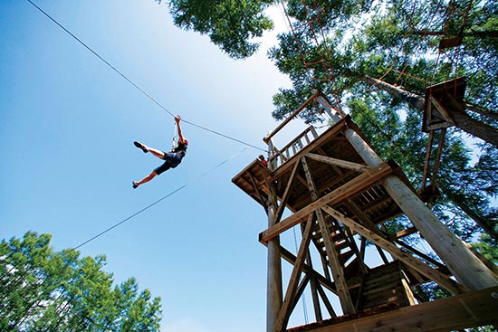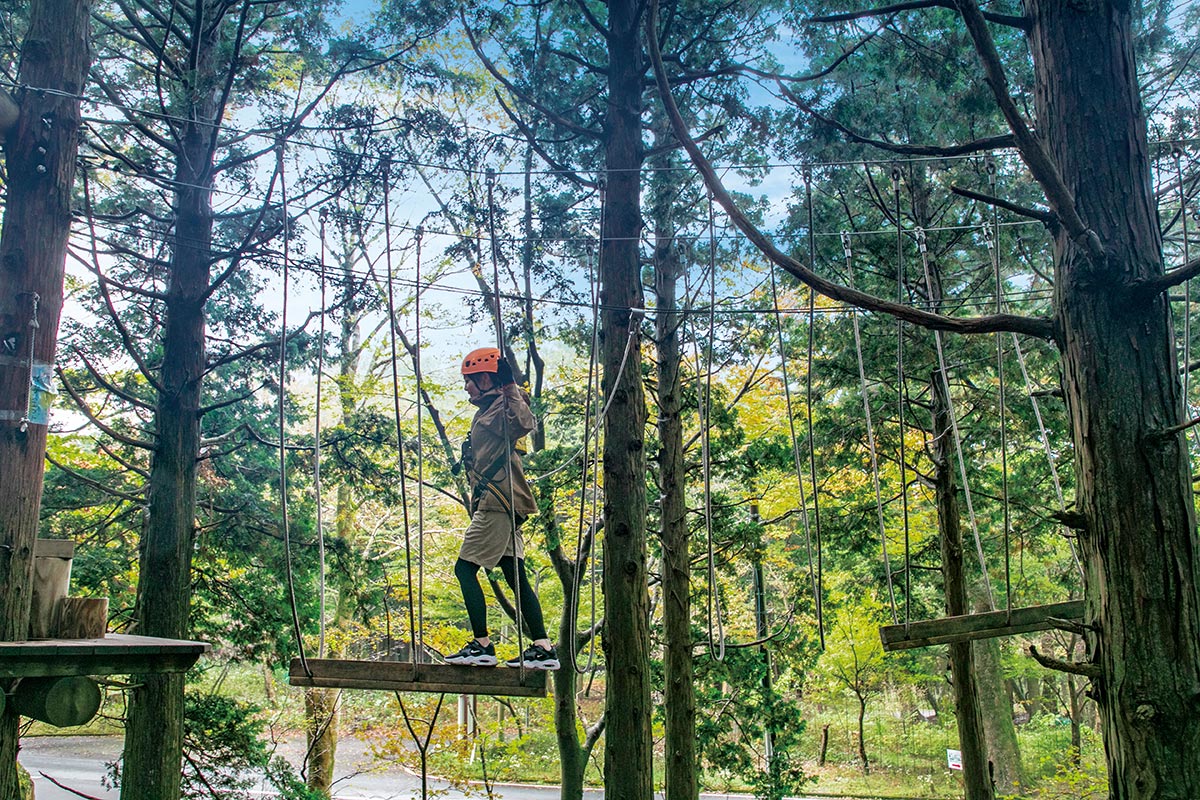 天城連山の山腹に広がる天城高原では、自然林の中でアスレチックにチャレンジできる