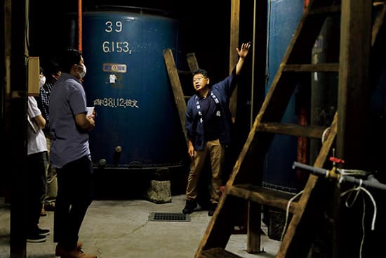 「無加圧状態で搾られた初日の日本酒と、少し加圧して搾られた日本酒では味わいが異なります。ぜひ、酒蔵見学の試飲で実感してください」(大島)。