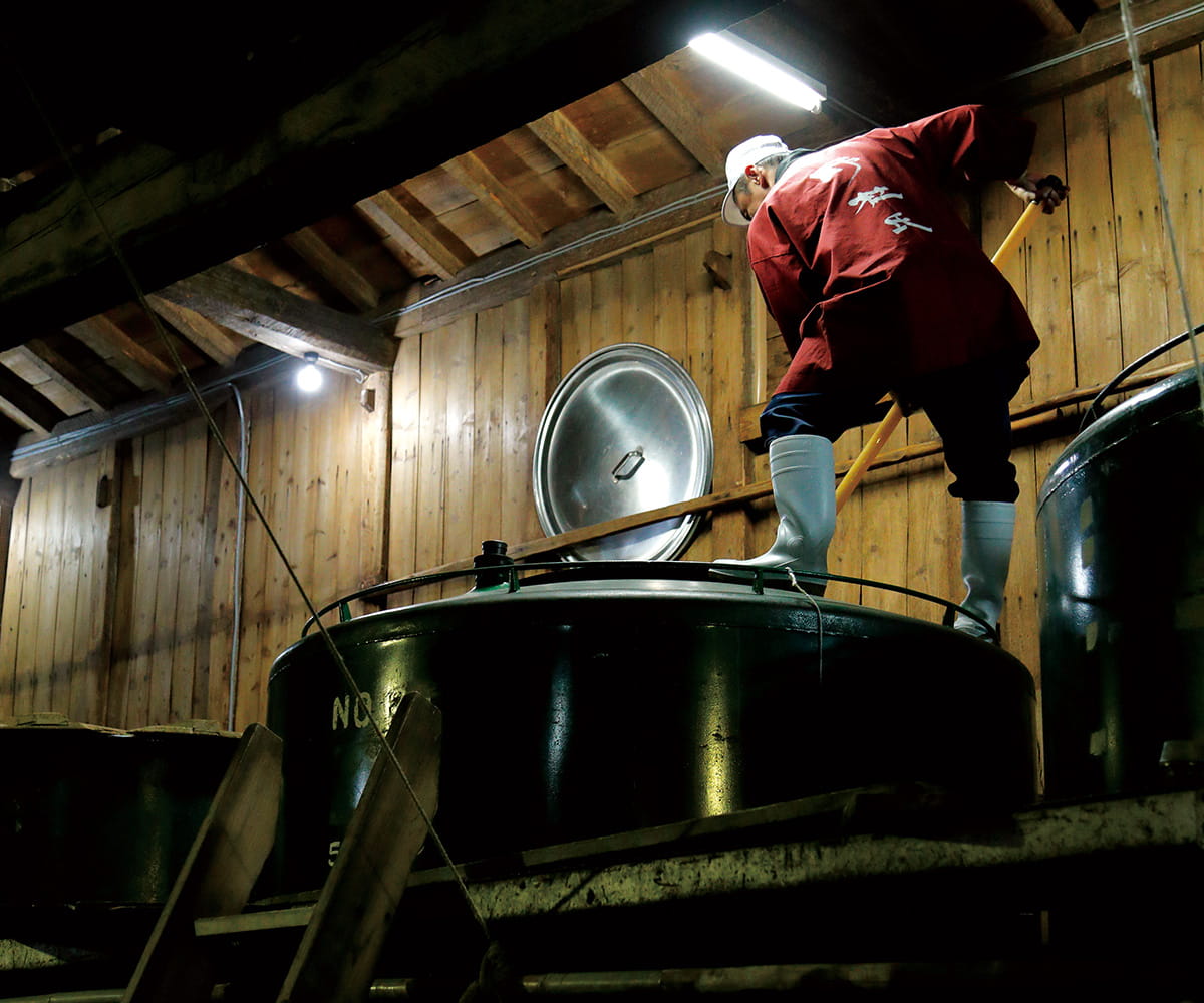 また、生酛純米酒『尊徳』は燗酒コンテストで金賞を受賞した銘酒。現在は酒造りに必要な乳酸を添加する速醸という製法が主流だが、『尊徳』は蔵内の自然の微生物の力で乳酸を培養する昔ながらの生酛造りを採用。速醸より倍以上の時間がかかるが落ち着いた味わいに仕上がるという。