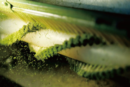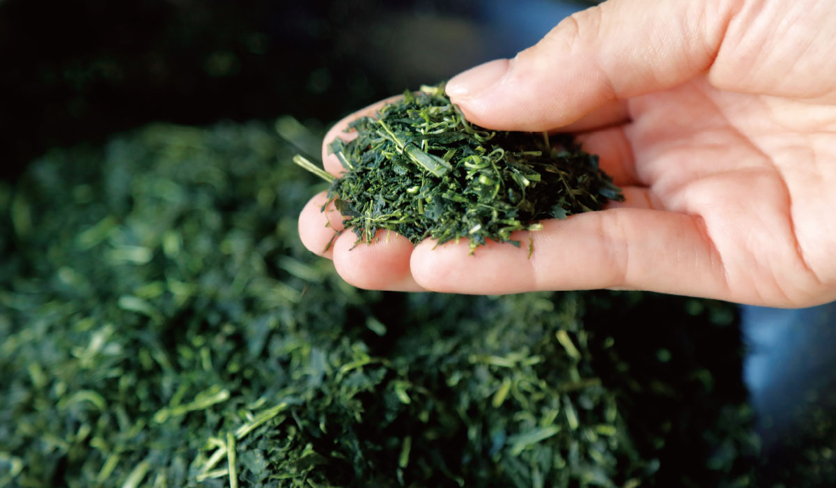 一方、ぐり茶のような形は丸めながら撚るため玉緑茶と呼ぶ。柔らかくないと丸める作業ができないため、用いる茶葉は摘みたての一番茶から二番茶まで。市川製茶では、こうしてできた荒茶を独自ブレンドしてぐり茶を製造している。香りもよく、その味わいは渋みや苦みが少ない、本来の茶葉が持つ甘さとまろやかさが感じられる。深蒸しした茶葉を使っているので、美しい緑色が際立つお茶の色も特徴のひとつだ。