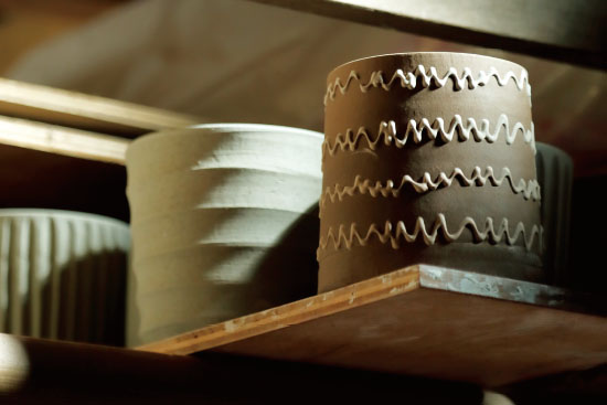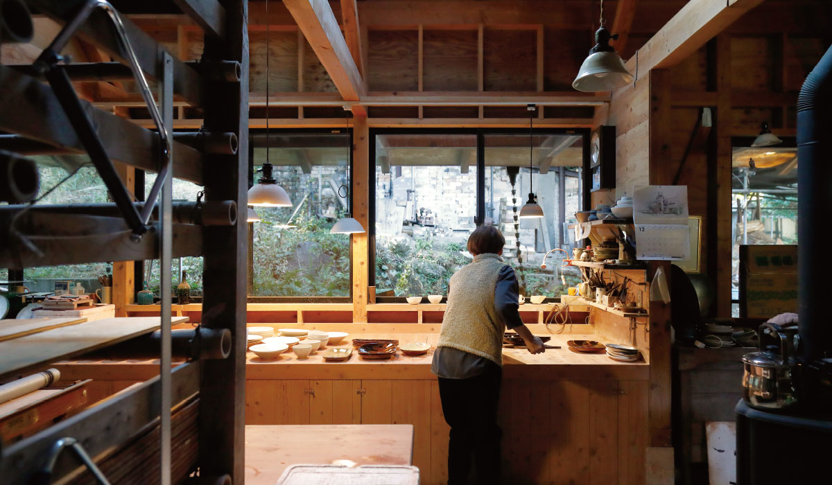 こうして形作った器をアトリエ横の大きな登り窯で焼く。火入れに使うのは伊豆で採取された薪。灰が舞って焼物に絶妙な色味を醸し出し、この地ならではの表情が生まれるのだ。