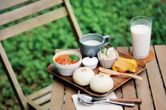 牧場にはカフェも併設されており、地域の農家さんの野菜を使ったランチや牧場でとれた生乳を使ったソフトクリームなども味わえる。カフェの一角では発酵バター、牛乳、チーズ、ヨーグルトなど、自家生産の乳製品を購入することができるのでお土産に買って帰ろう。
