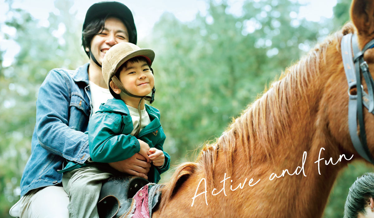 この牧場を訪れたら、広い敷地を活かした乗馬はぜひ体験してもらいたいアクティビティの一つ。3㎞、5㎞、7㎞のコースがあり、牧場内の私道を馬に乗って散歩できる。並木道を歩いたり、広大な放牧場を眺めたりと変化に富んだ景色も楽しい。馬たちはしっかり調教されているのでレクチャーを受ければ初心者でも安全に乗馬が楽しめる。5才以下の子どもなら大人との二人乗りもできる。小さな子ども向けのひき馬でパドックをまわるポニー乗馬もおすすめ。乗馬教室も開催しており、何度も訪れるリピーターも多いそうだ。