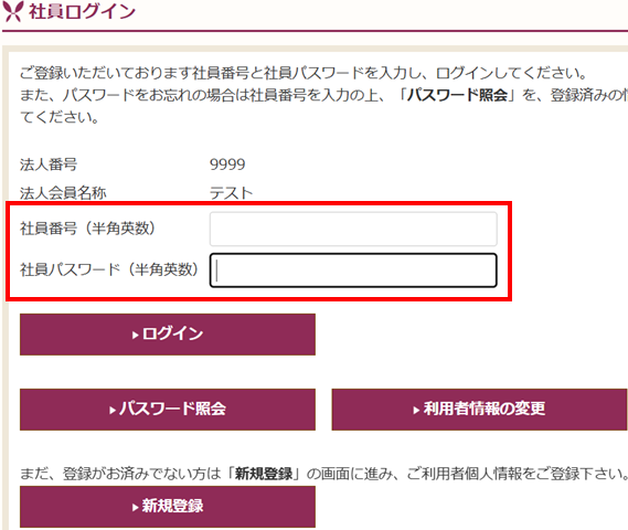 社員番号・社員パスワードを入力してください。