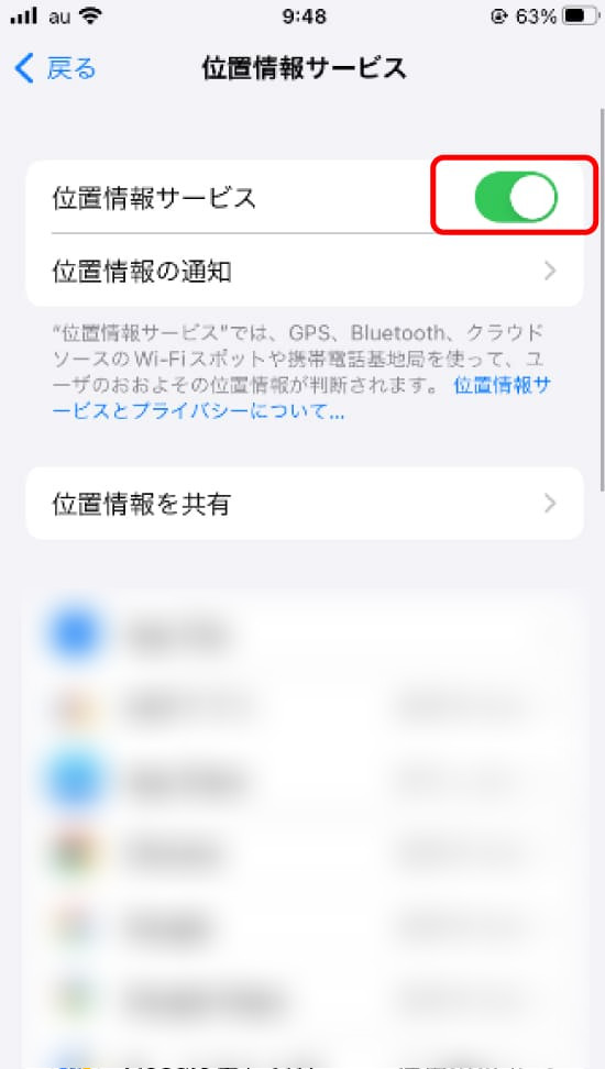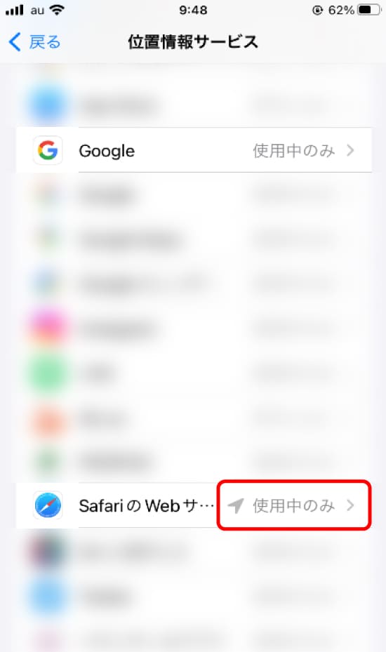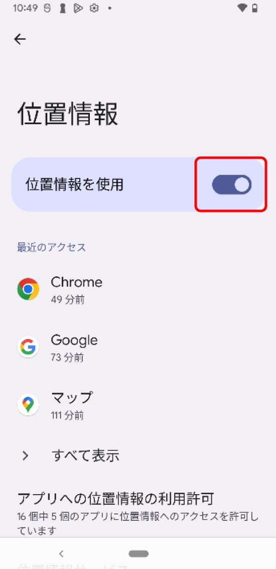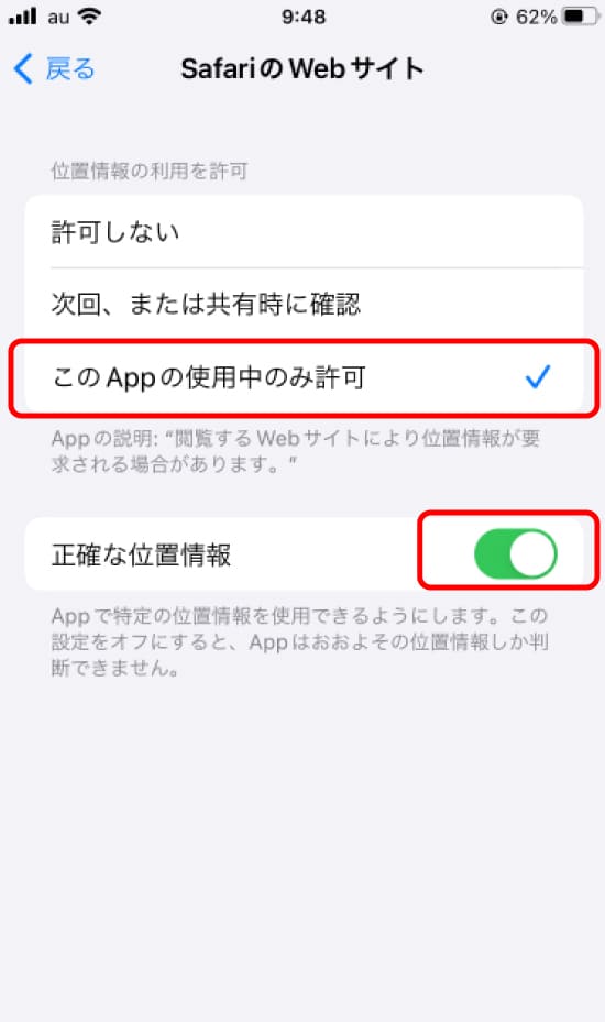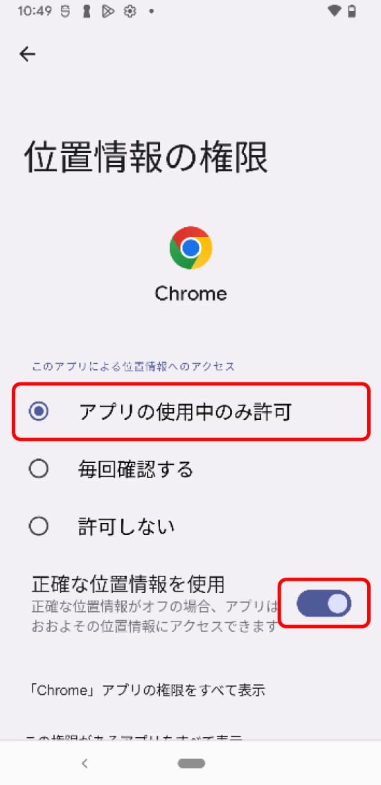 また、「正確な位置情報を使用」にもチェックを入れます。