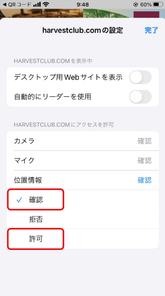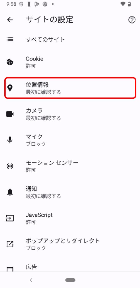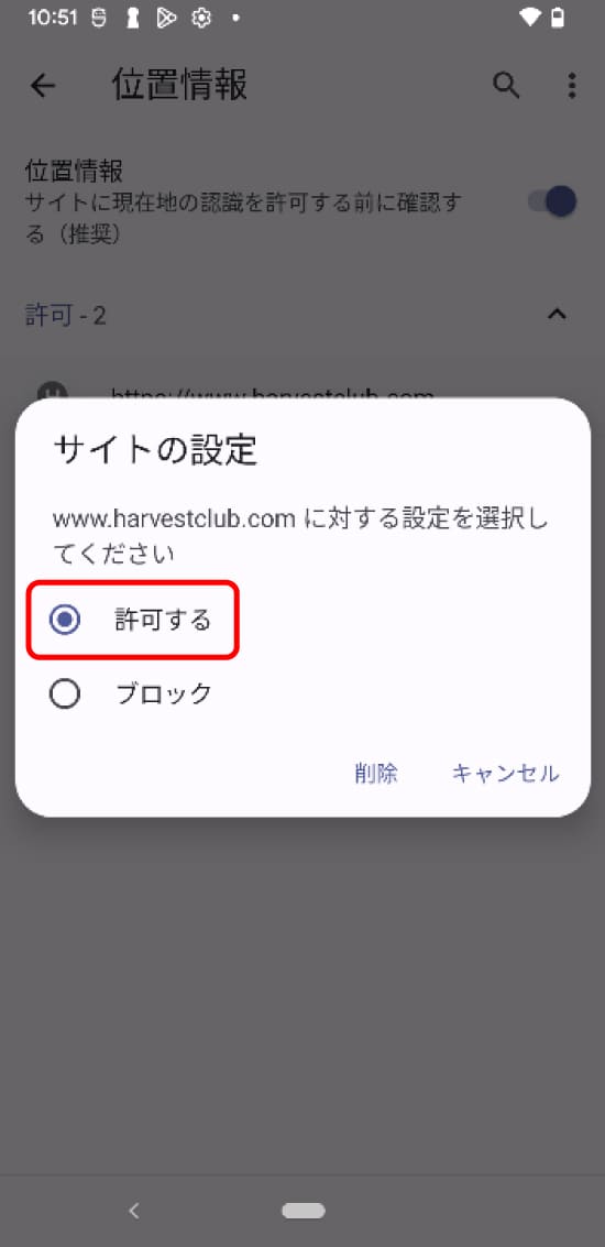 位置情報の項で「確認」もしくは「許可」にチェックを入れます。