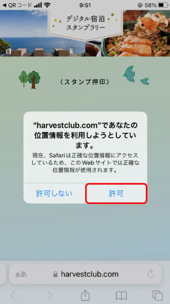 こちらのようなポップアップが表示された場合は、「許可」をタップします。