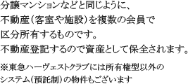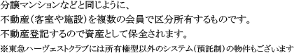 「不動産所有を伴わず、利用する権利のみを取得する」タイプの会員権です。
