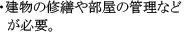 施設メンテナンスを行い、資産価値の保全に努めます。