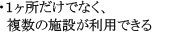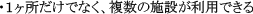 - 1ヶ所だけでなく、複数の施設が利用できる。