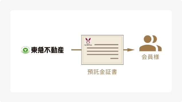 一定期間預託金を預け入れることによって預託金証書が発行され、施設を利用する権利を得るシステム。会員権価格の内訳には預託金部分が含まれており、預託金は退会時(または据置期間終了後)に、無利息・無配当にて、全額返還されます。