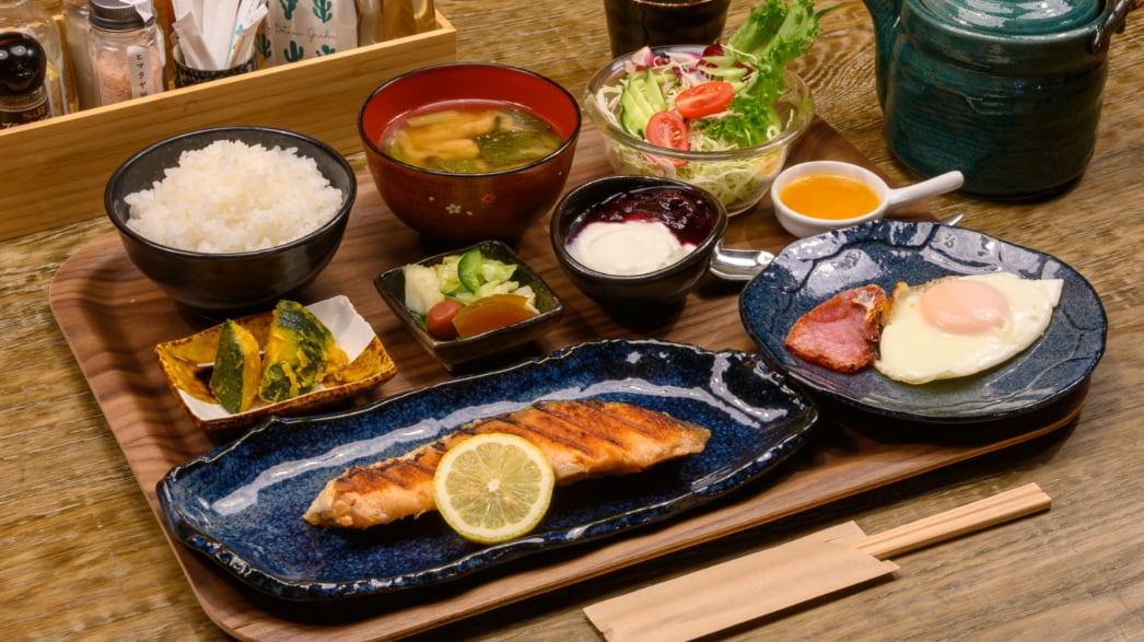 いつも行列ができる食事処「朝ごはん 午後ごはん YAMAIRO」は、「松むら饅頭」のはす向かいに位置。草津温泉で朝からご飯をいただける貴重なお店です。西の河原通りを見下ろす2階にある店内で提供されるのは、地元の食材などを使って手作りされる家庭料理。大ぶりの焼鮭や季節の小鉢にドリンクなどが付いた焼鮭定食のほか、北海道産のいくらを醤油漬けにしたプレミアムな鮭いくら定食やトーストセット、目玉焼き定食なども人気があります。