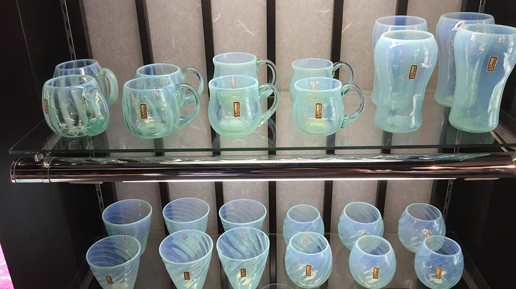 温泉硝子を使った美しいガラス製品が並ぶ「草津ガラス蔵」