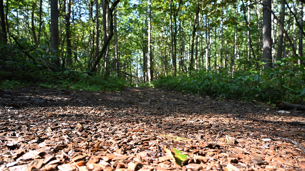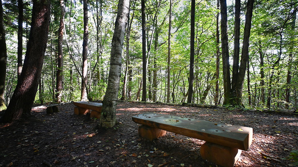 ロイヤルコースを散策する際の楽しみ方といえば、歩道に敷き詰められたアカマツのウッドチップと、森林の香り。森の中で大きく深呼吸してみると、森の美味しい空気が身体に入り、とても癒される木の香りが。また、ウッドチップが敷き詰められた『そよ風広場』では、休憩を挟んで、さらに森の香りに包まれてみましょう。ベンチに腰掛けて、瞑想にふけるのもいいかもしれません。