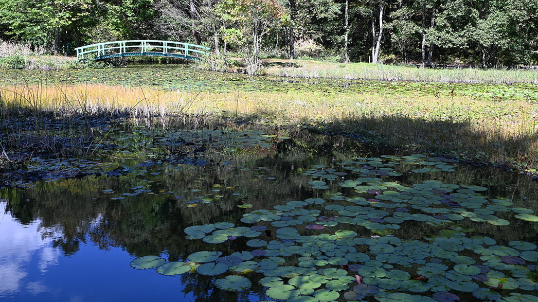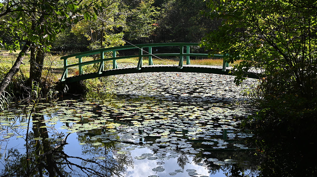 ロイヤルコースから少し外れますが、足を伸ばして欲しいのが「大谷地池」。池には、フランス絵画の巨匠・モネが描いた『睡蓮の絵』を模して作られた『モネの橋』と呼ばれる緑色の橋が架かっています。実際に訪れると、まさに絵画の中に入り込んだよう。撮影時には花は見られなかったのですが、散歩していた地元の方におうかがいしたところ、花のシーズンは6~8月、ハスの花が水面に浮かぶ風景は特に美しいとか。