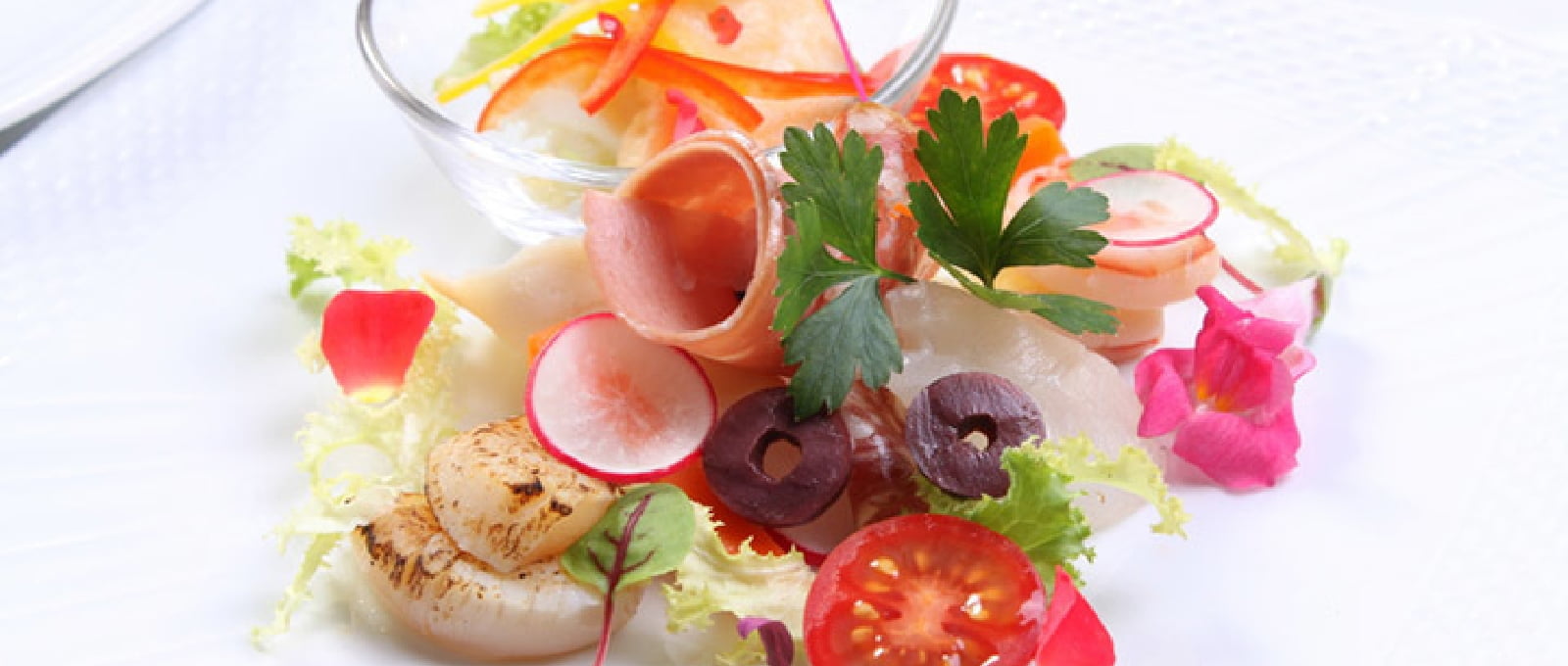 兵庫・丹波地方の食材と、イタリアやフランスから輸入した厳選素材が織り成す洋と和のマリアージュをご堪能ください。