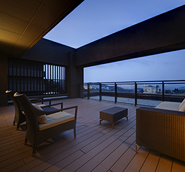 ルーフテラスのある客室をはじめ、お二人でゆったりと寛げるツイン客室。