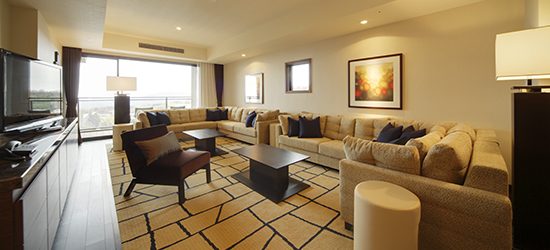 このほか上階には和室を備えた、吹き抜けのリビングがゆとりの空間を演出する、メゾネット客室もご用意しています。