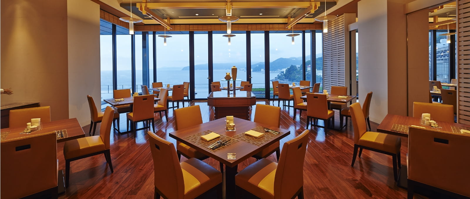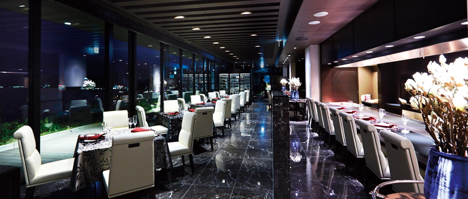 開放的な眺めを堪能しながら優雅に過ごす、東館最上階にあるフレンチメインのファインダイニング(洋食)。