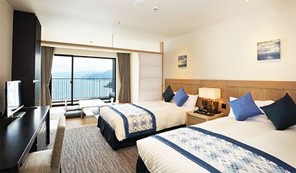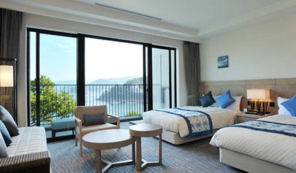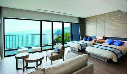 洋室や和洋室など豊富なバリエーションでご用意した、海と緑を望むゲストルーム。
