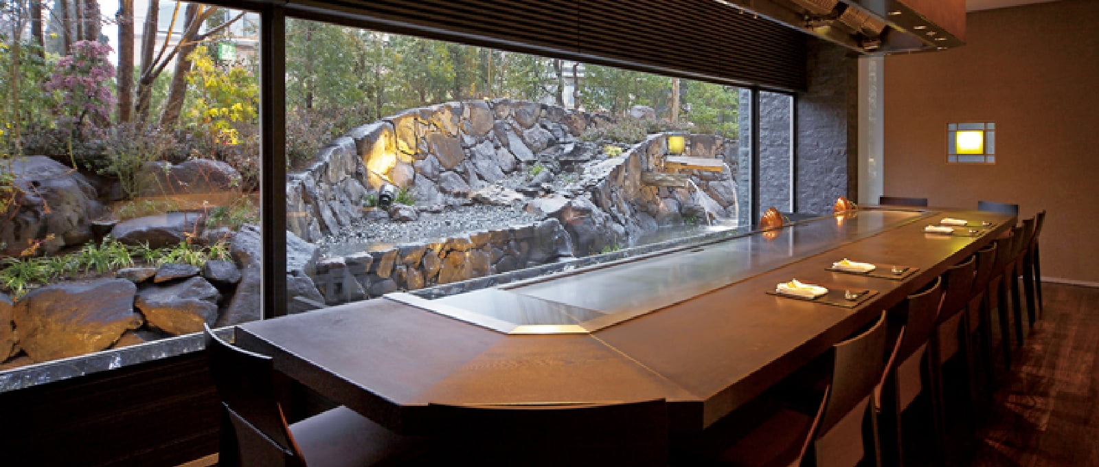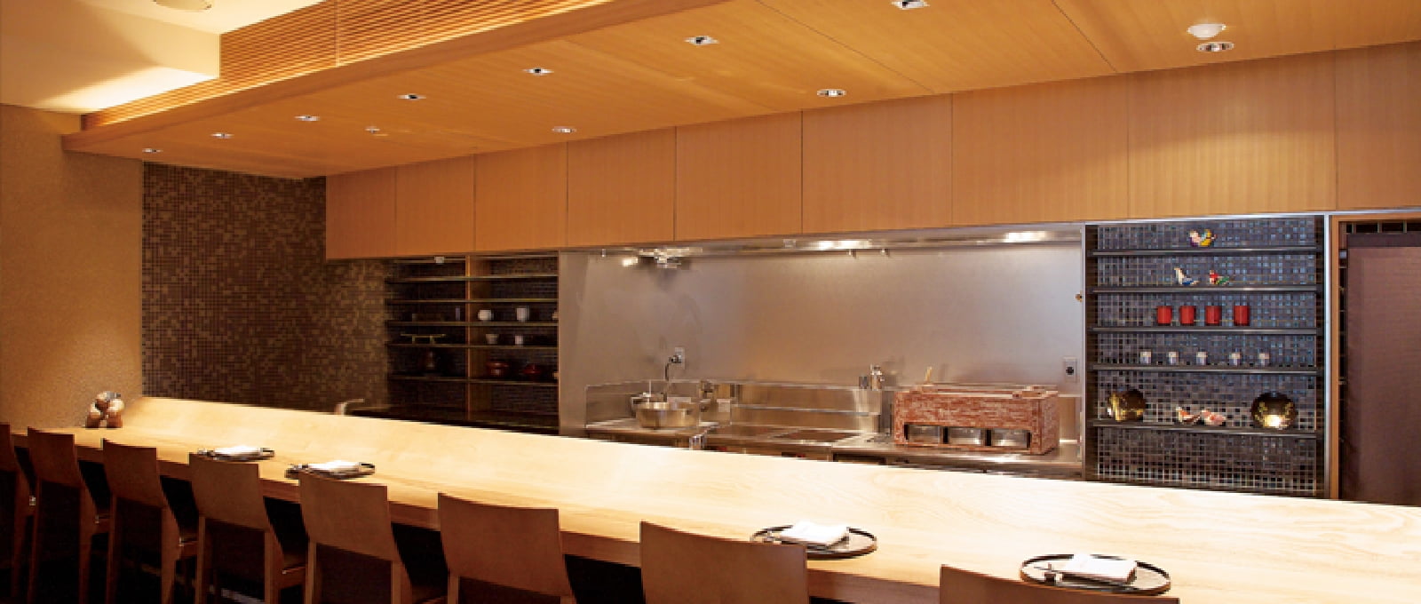 和の趣を感じる落ち着いた空間で、二十四節気など日本伝統の時節の演出も美しいひと品ひと品をいただく。