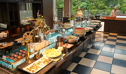 光と水に包まれたThe Dining「四季彩」では、和洋それぞれのフォーマルコース料理の他、ブッフェもご用意。シーンに合わせてご利用いただけます。