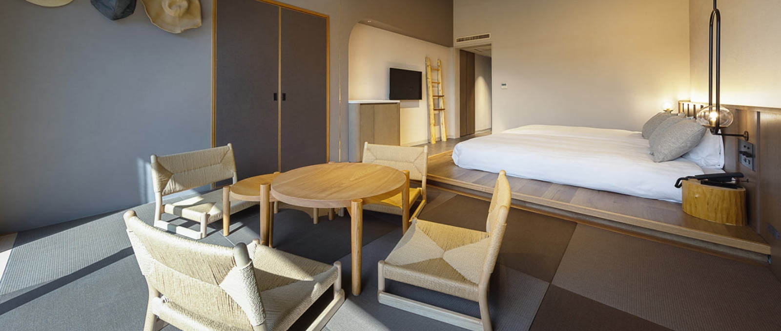 長閑な自然の風景と、素朴な質感で感性をやさしく満たす宿泊空間。