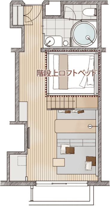 - 洋室(ロフトベッド)の客室は、ダブルベッド 3台のご用意となります。