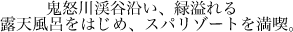 レストラン(3ヶ所)、温泉大浴場(露天風呂・ミストルーム・サウナ等)※加温・加水・循環ろ過装置、屋内温水プール、ショップ、駐車場(無料)他