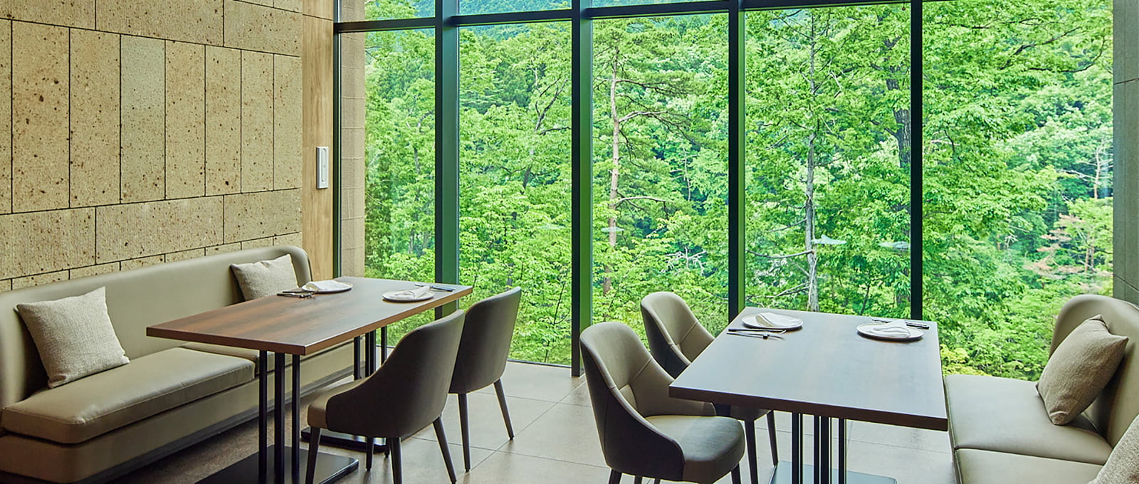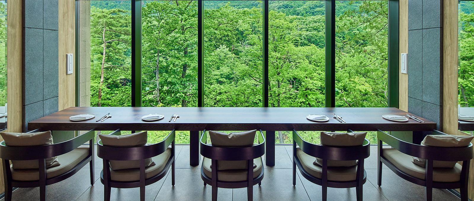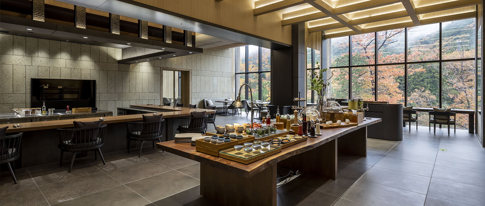 ダイニングでは地元食材にこだわったグリル料理と「さまざまな炎(火の穂)の体感」をコンセプトにした居心地のいい空間で、鬼怒川ならではの美味が満喫できます。