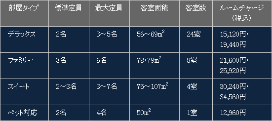 • ペット料金 4,400円/1泊・室(ペット数は定員同数までとなります)