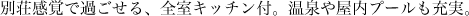 全室にキッチンを設置し、プライベート感あふれるひとときを演出します。