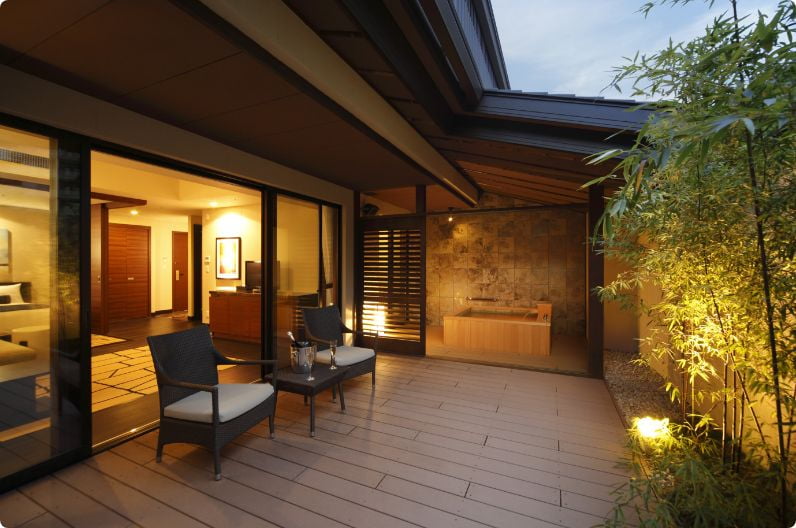温泉露天風呂を備え付けたお部屋を多くご用意しております。